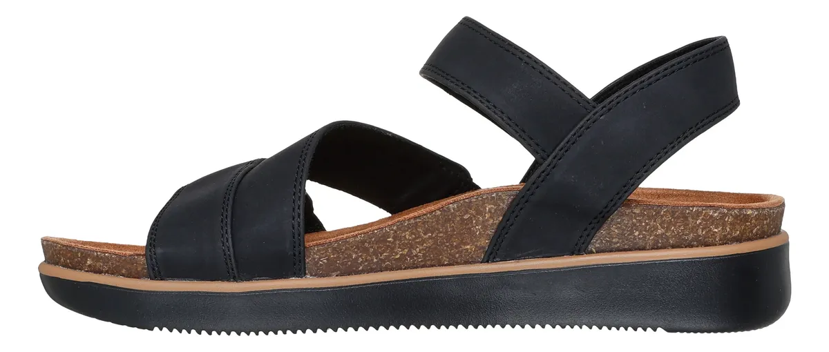 Dale un toque moderno y sofisticado a tu look para el verano con las Skechers Lifted Comfort. Disponibles en varios colores, estas sandalias veganas cuentan con una correa ajustable de piel sintética y una plantilla Skechers Memory Foam con ribete de corcho.