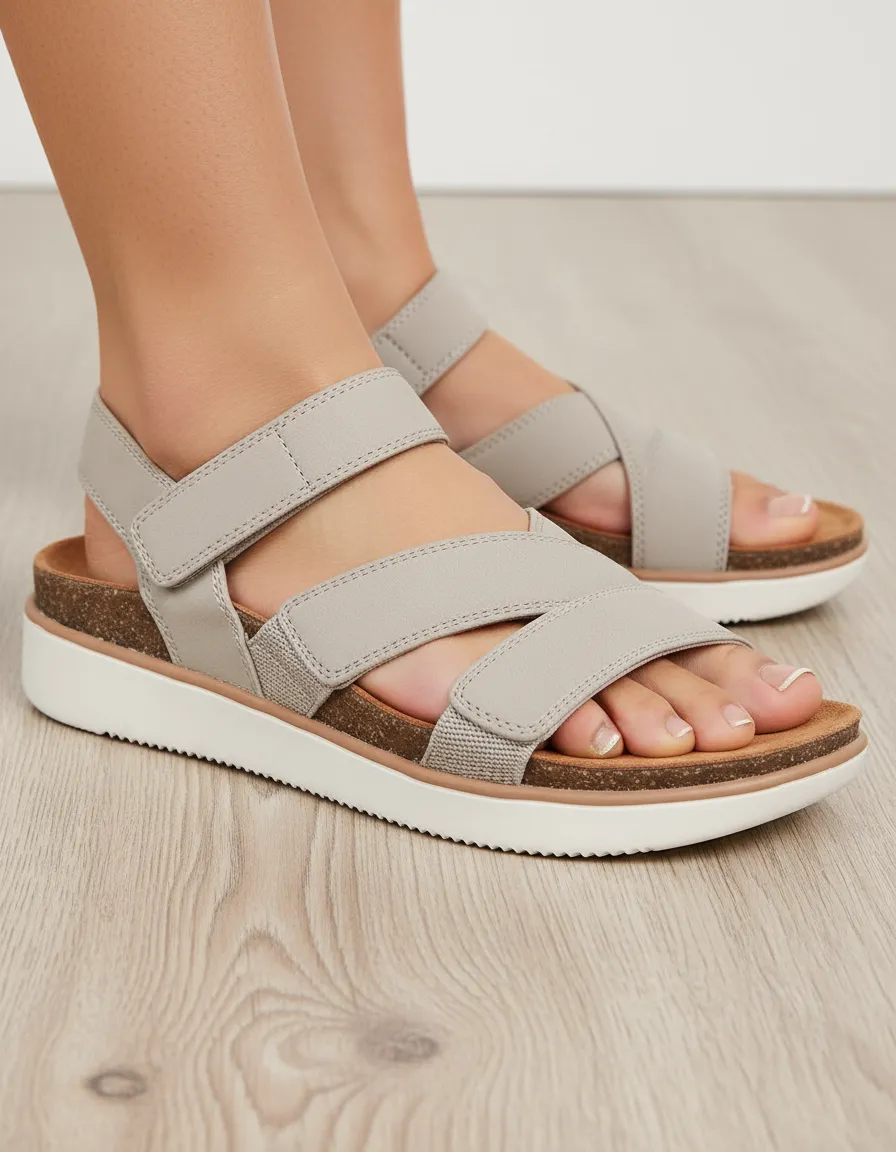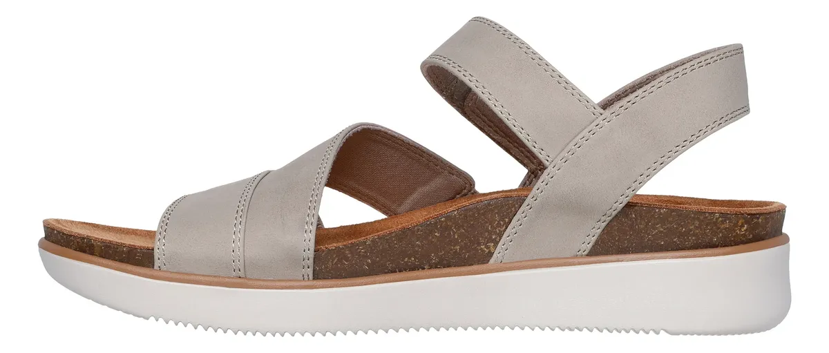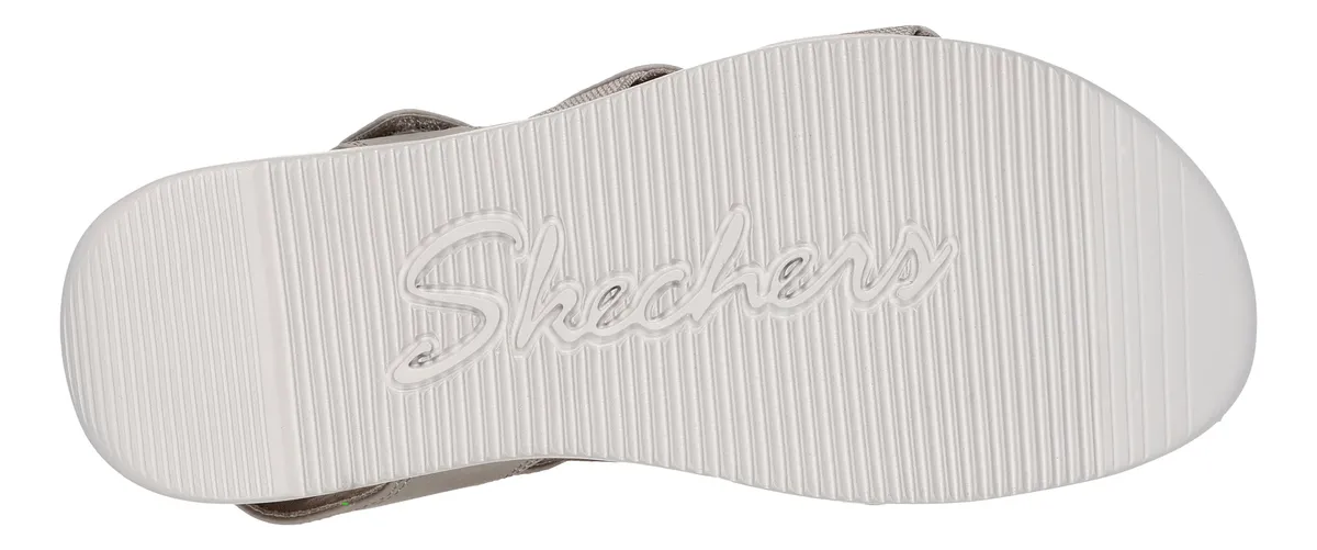 Dale un toque moderno y sofisticado a tu look para el verano con las Skechers Lifted Comfort. Disponibles en varios colores, estas sandalias veganas cuentan con una correa ajustable de piel sintética y una plantilla Skechers Memory Foam con ribete de corcho.